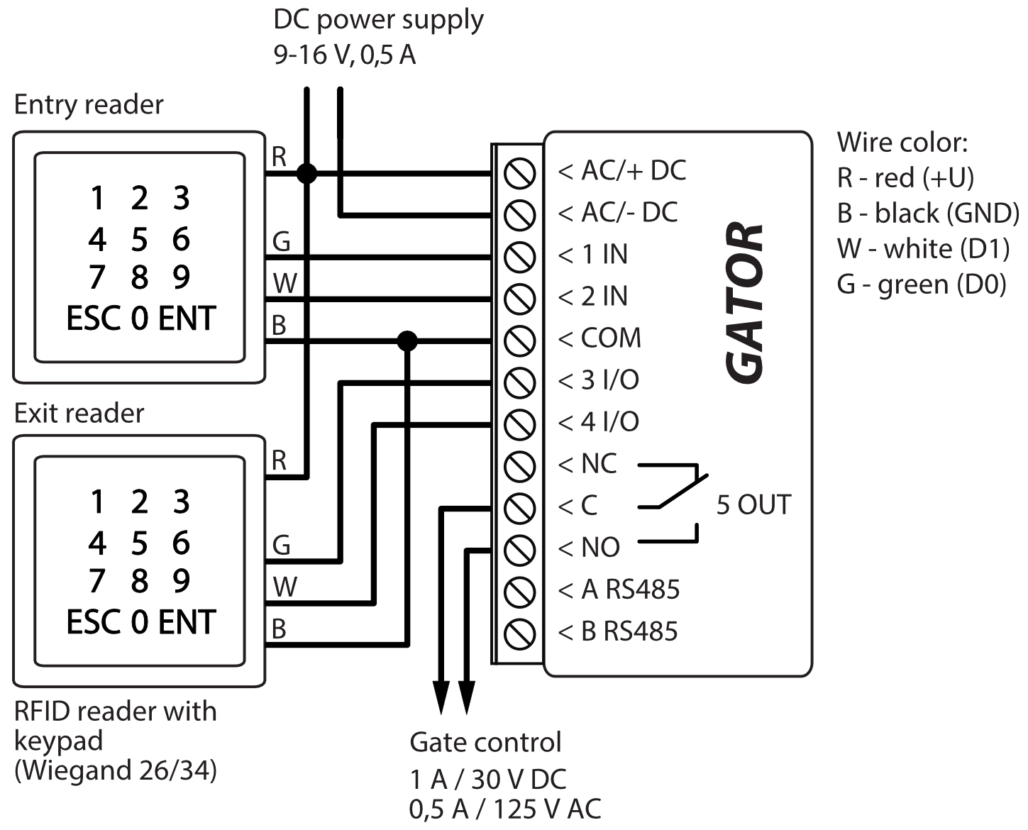 - The opening of the door or gate magnetic lock, turnstile is handled by the built-in relay of the GV17